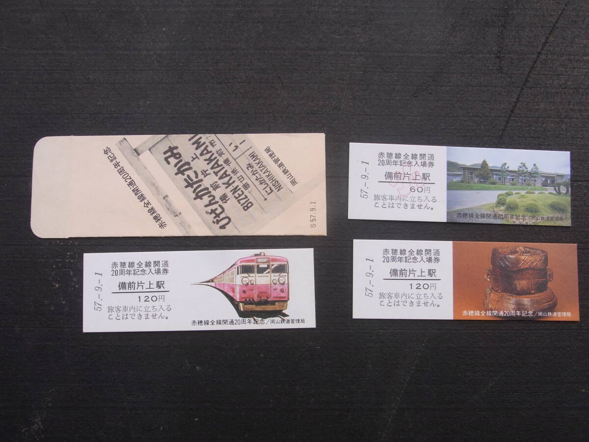 - 赤穂線全線開通20周年記念入場券 「備前片上駅」S57.9.1
