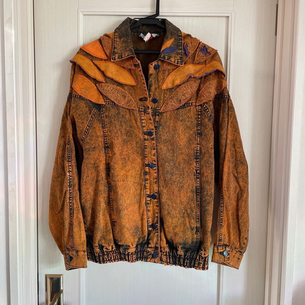 > 古着 薄手 ジージャン デニム オレンジ ヴィンテージ ビンテージ パッチワーク デニムジャケット オールド