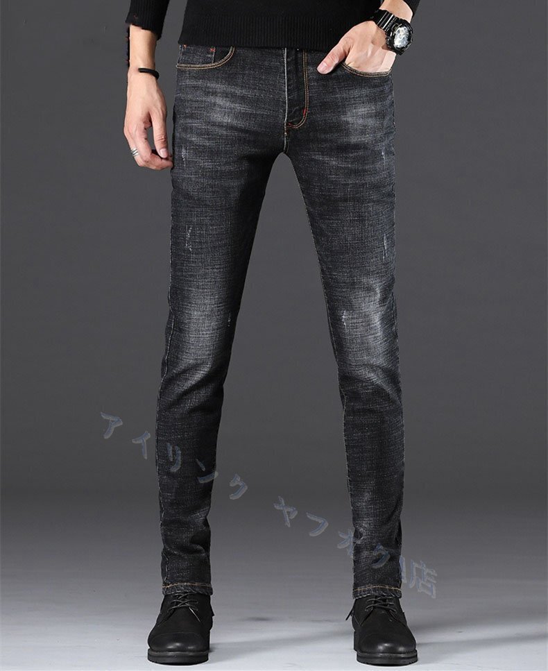 - 新品ジーンズ デニム メンズ スキニージーンズ スキニーパンツ カジュアル ストレッチ生地 ウォッシュ加工 8~36 ブラック
