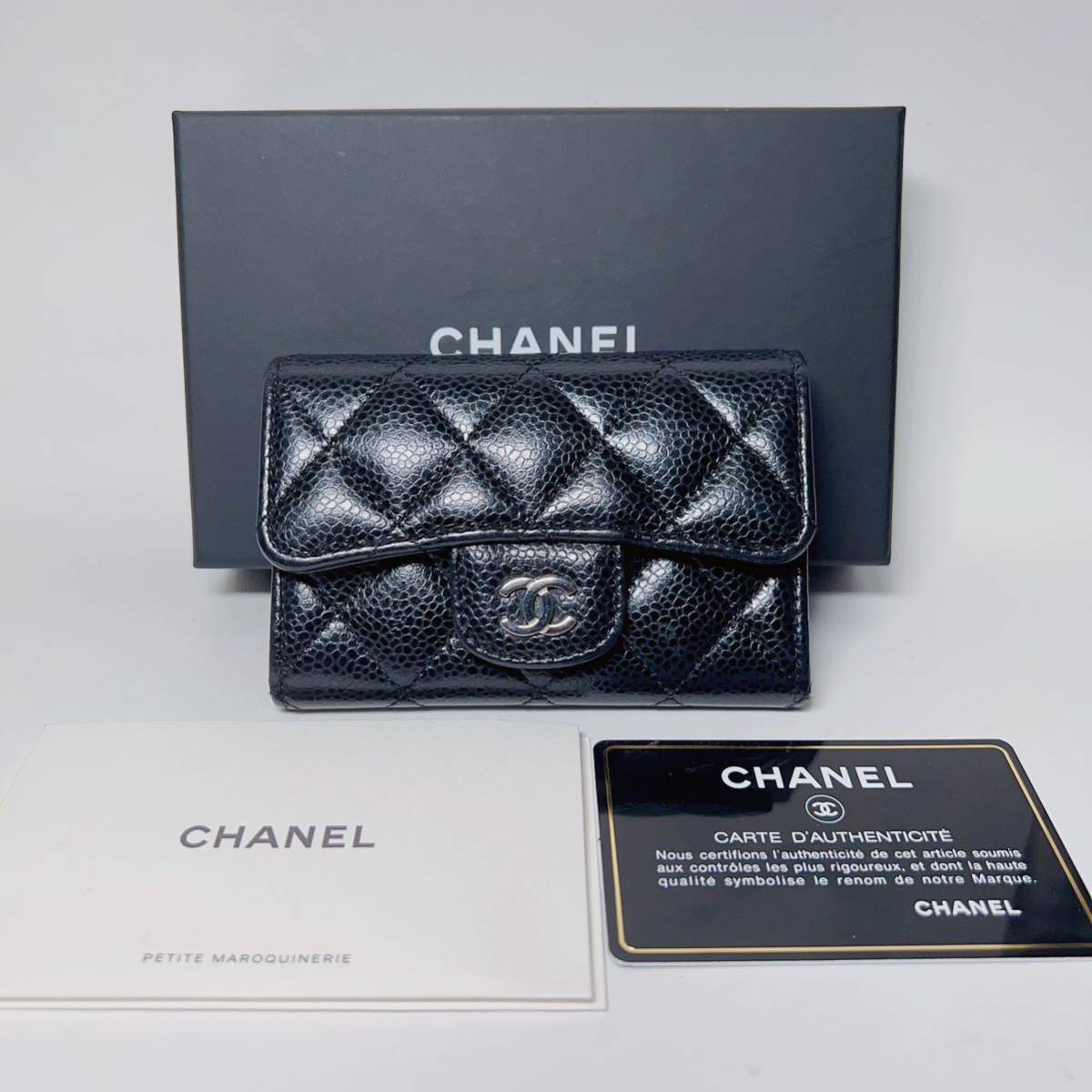 > CHANEL シャネル マトラッセ フラップ カードケース コインケース ココマーク キャビアスキン 黒