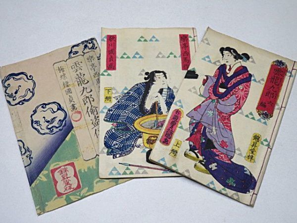 - 雲竜九郎 6編上下2冊揃い 袋付き 楽亭西馬 歌川国貞 豊国◆江戸期 絵草紙 和本 絵本 木版画 浮世絵 幽霊 貴重本