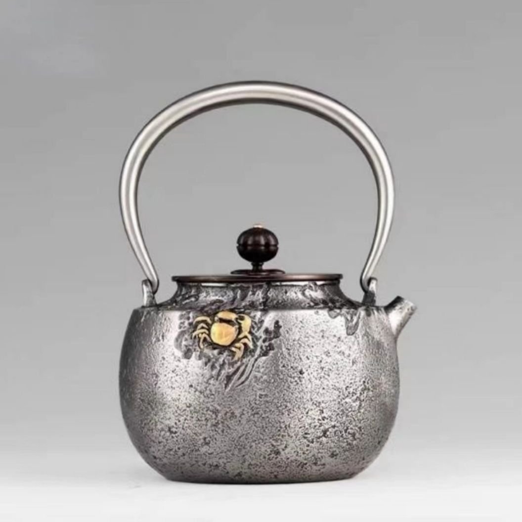 - 超人気 900ML 砂鉄製 鉄やかん 鉄分補給 鉄びん 岩蟹象嵌 手作り 老鉄瓶 提梁壺 対応 コーティングなし