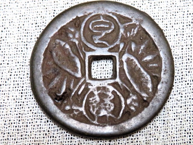 - 絵銭 白蓮香瑞 雙蓮銭 直径約26.3mm 朝鮮 中国絵銭