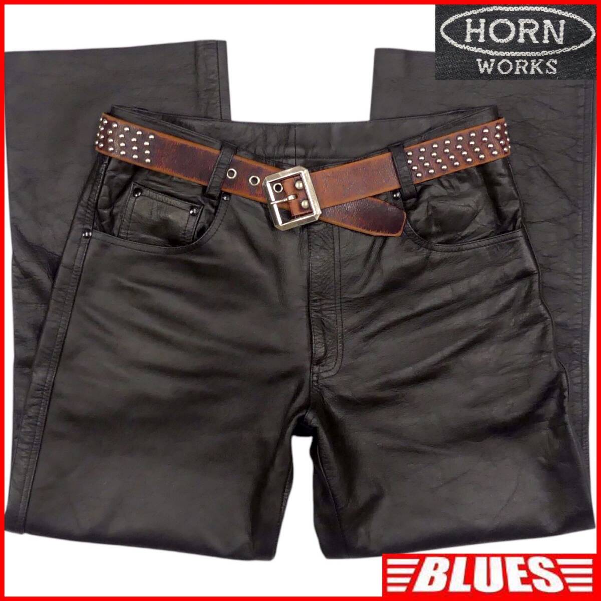 - 即決★HORN WORKS★W34 レザーパンツ ホーンワークス メンズ 黒 本革 ライダースパンツ 本皮 パンクロック ライディング ツーリング