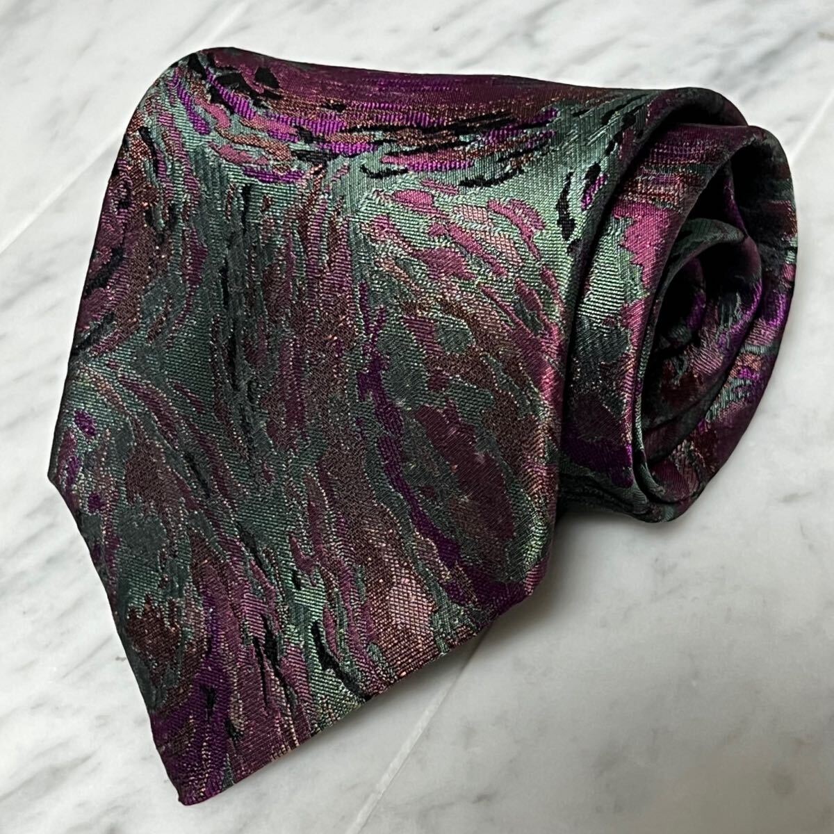 - 【美品】 999円~ モジリアーニ ネクタイ パープル グレー系 総柄 (GB2)