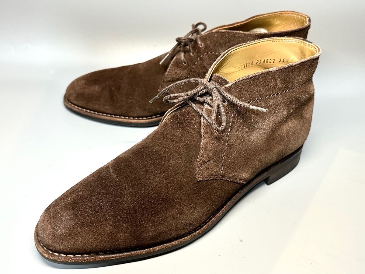 - 【即決】Paul Stuart 25.5cm メンズ ポールスチュアート 本皮 革靴 くつ カジュアル 4002 レザー 茶 ブラウン スエード チャッカブーツ