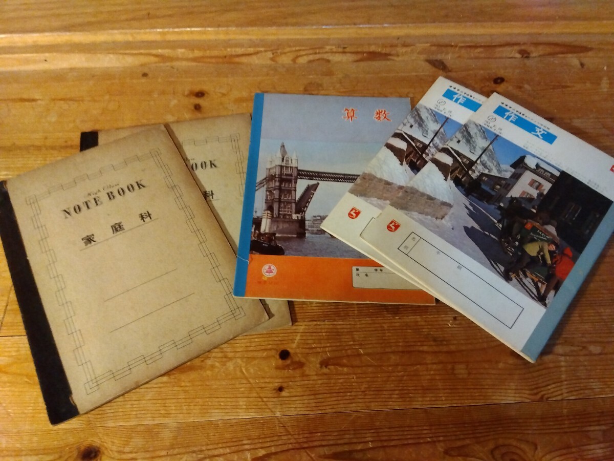 - ⑩昭和レトロな小学校の【作文/算数/家庭科】学習ノート/帳面が3種5冊、新品未使用長期保管品、三丁目の夕日時代、♯朝来佐嚢♯
