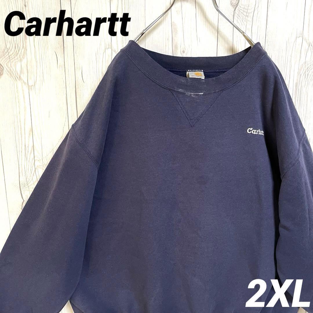 - Carhartt カーハート スウェットトレナー メキシコ産 メンズ2XLサイズ 濃紺 ネイビーブルー ロゴ刺繍 大きい