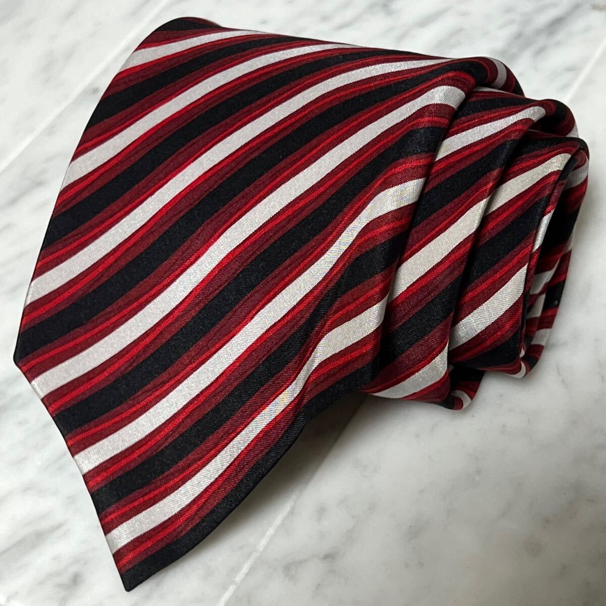 - 770円~ ピエールバルマン ネクタイ ストライプ レッド ブラック (R1)