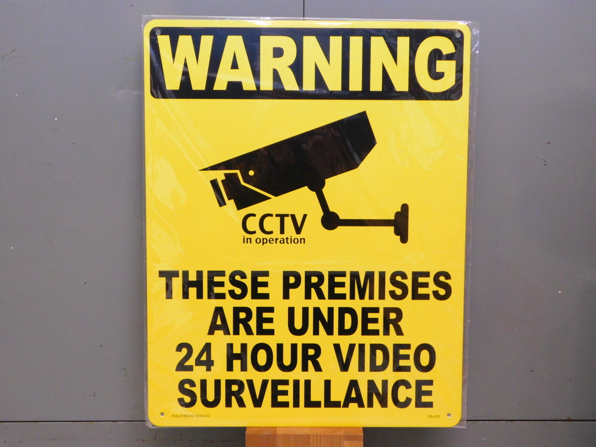 - サインプレートLサイズ CA-L03 《24時間監視中》 WARNIG 警告 ガレージ 看板 アメリカ サインボード
