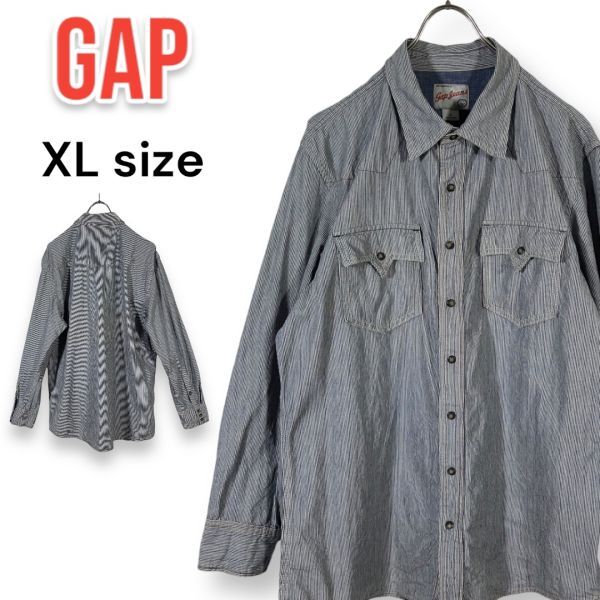 - 【レア】gap jeans 長袖シャツ ウエスタンシャツ ストライプ XLサイズ ギャップ ジーンズ 大きいサイズ