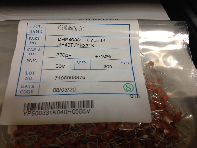 - 円板型セラミックコンデンサ HE40TJYB331K YB特性 50V 330pF 10個入