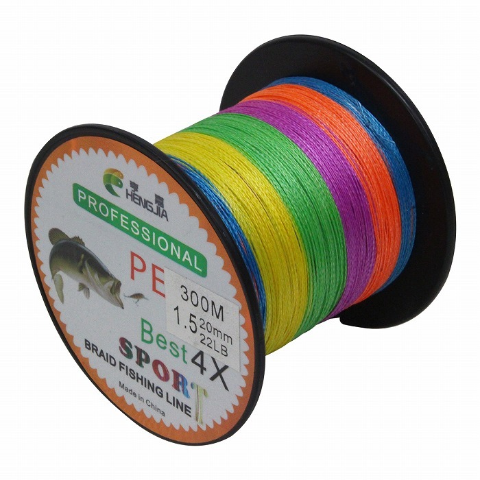 - 低伸度/高強度 300m PEライン 1.5号/22lb 5色 マルチカラー MIX 投げ釣り 船釣り エギング ジギング タイラバ ルアー 釣り糸 リール