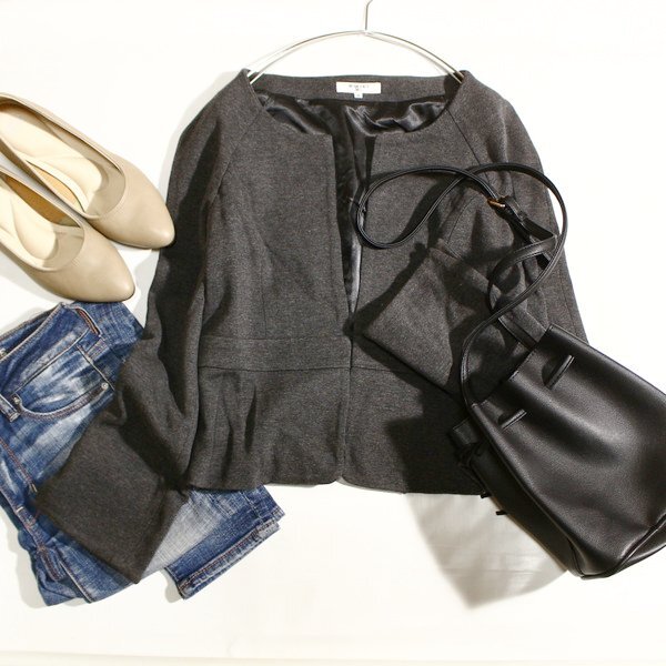 > 美品 NATURAL BEAUTY BASIC ナチュラルビューティーベーシック 綺麗めノーカラー ジャケット M 春 秋 24A12