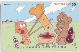 - 【テレカ】 はじめ人間ギャートルズ 園山俊二 FUJI FOOD YOKOHAMA フリー110-81944 テレホンカード 6K-I0153 未使用・Aランク