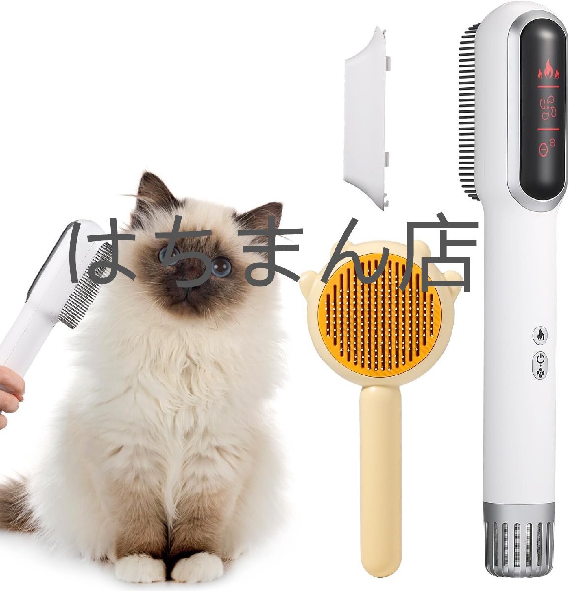 - ペットドライヤー ペット用 コームドライヤー LED マイナスイオン 低騒音 2種類のノズル 400-800W 小型 片手操作 猫 小型犬 グルーミング