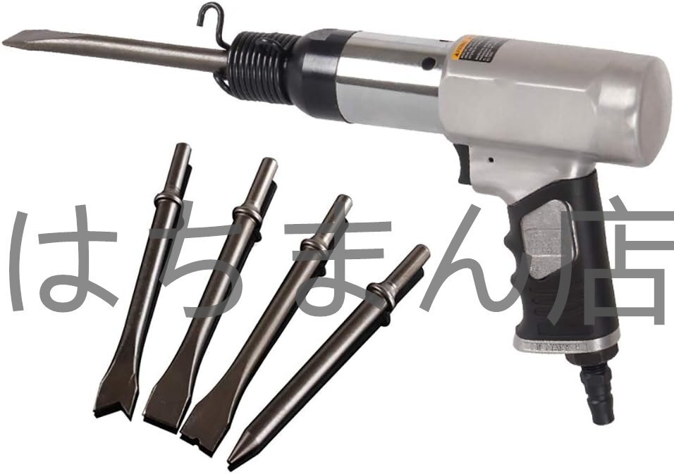 - エアーハンマー 空気圧ハンマー ポイントチゼル/フラットチゼル 耐摩耗性 チゼル4本 コンクリート モルタル 石材 ハツリ作業 (グレー)