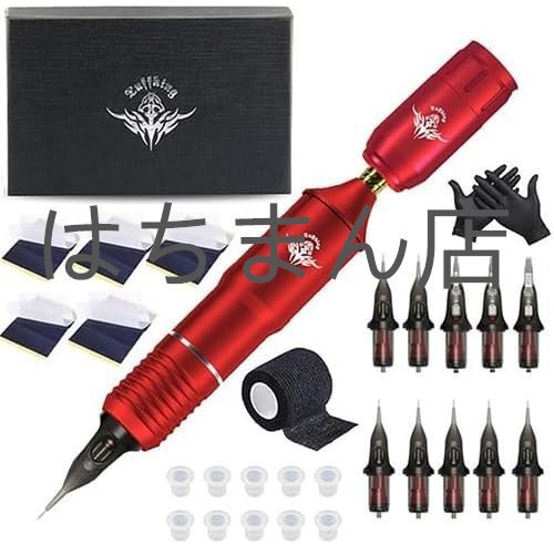 - プロのタトゥーマシン ワイヤレスタトゥーマシン セット カートリッジ針10本付き電動タトゥーペン初心者タトゥーマシン (Color : レッド)