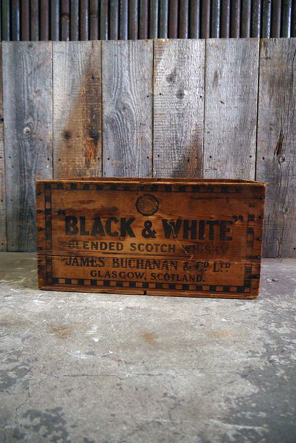 - ビンテージBLACK&WHITEウッドボックス[gobw-205]検アメリカ/USA/インテリア/コレクション雑貨/スコッチウイスキー1950年代木箱店舗什器