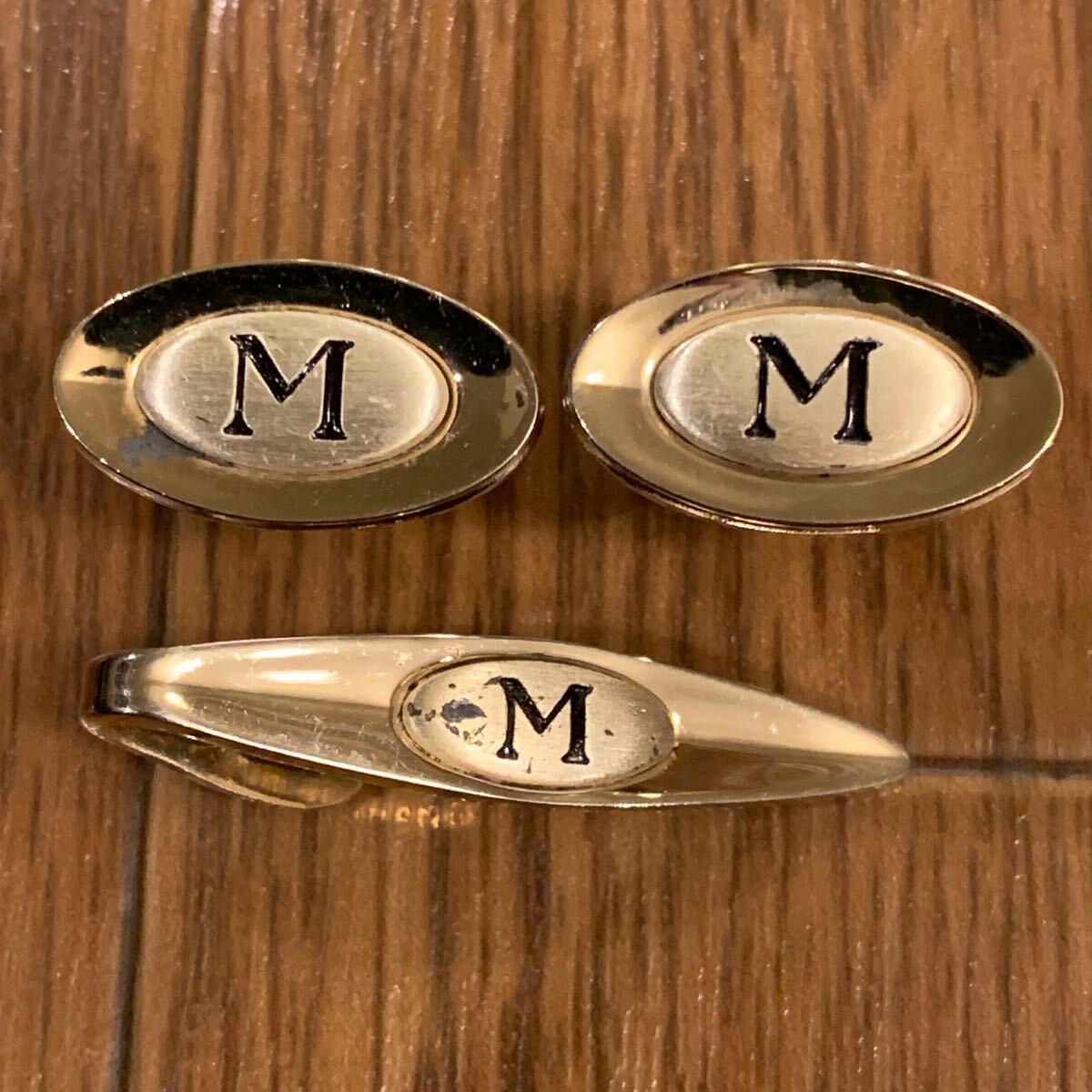 - 送料無料 US ヴィンテージ ネクタイピン カフリンクス M オーバル