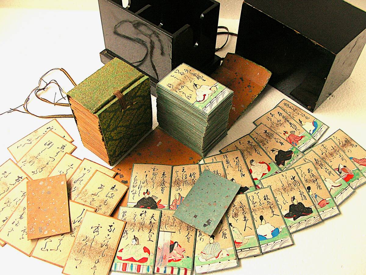 - 肉筆 小倉百人一首 歌留多◆200枚揃◆木版手彩色◆雰囲気の良いお品です!