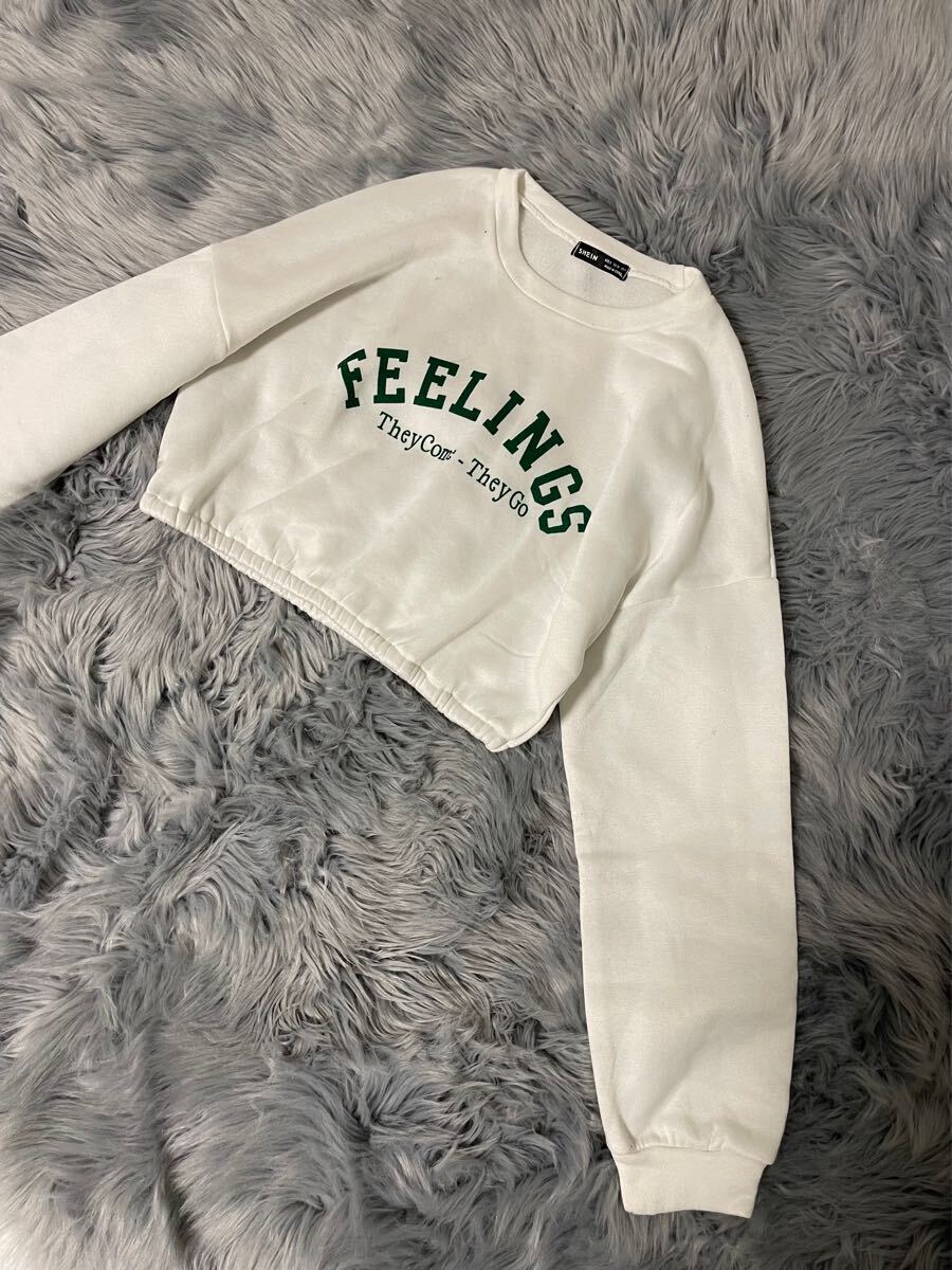 - 【SHEIN】シーイン/裏起毛トレーナー S スウェット トップス ショート丈 白 ホワイト
