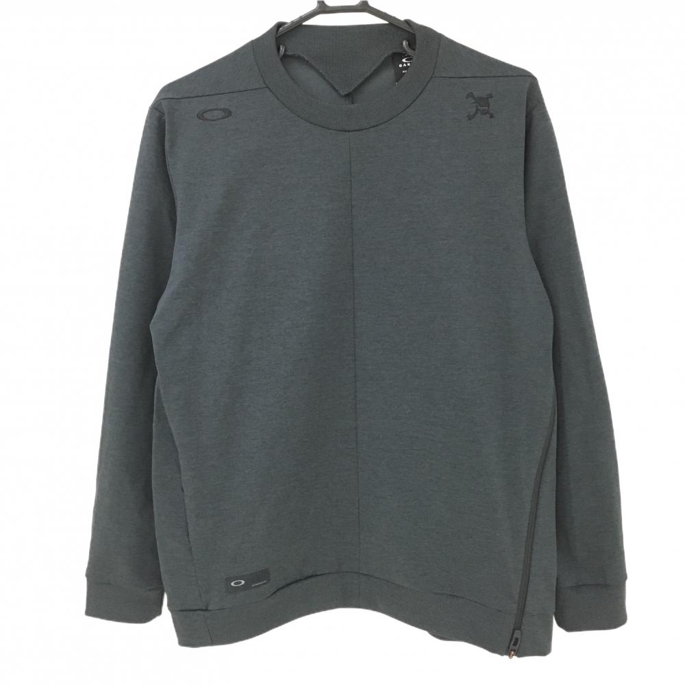 - 【超美品】オークリー トレーナー ダークグレー 地模様 サイドファスナー ロゴ刺しゅう 薄手 メンズ L ゴルフウェア Oakley