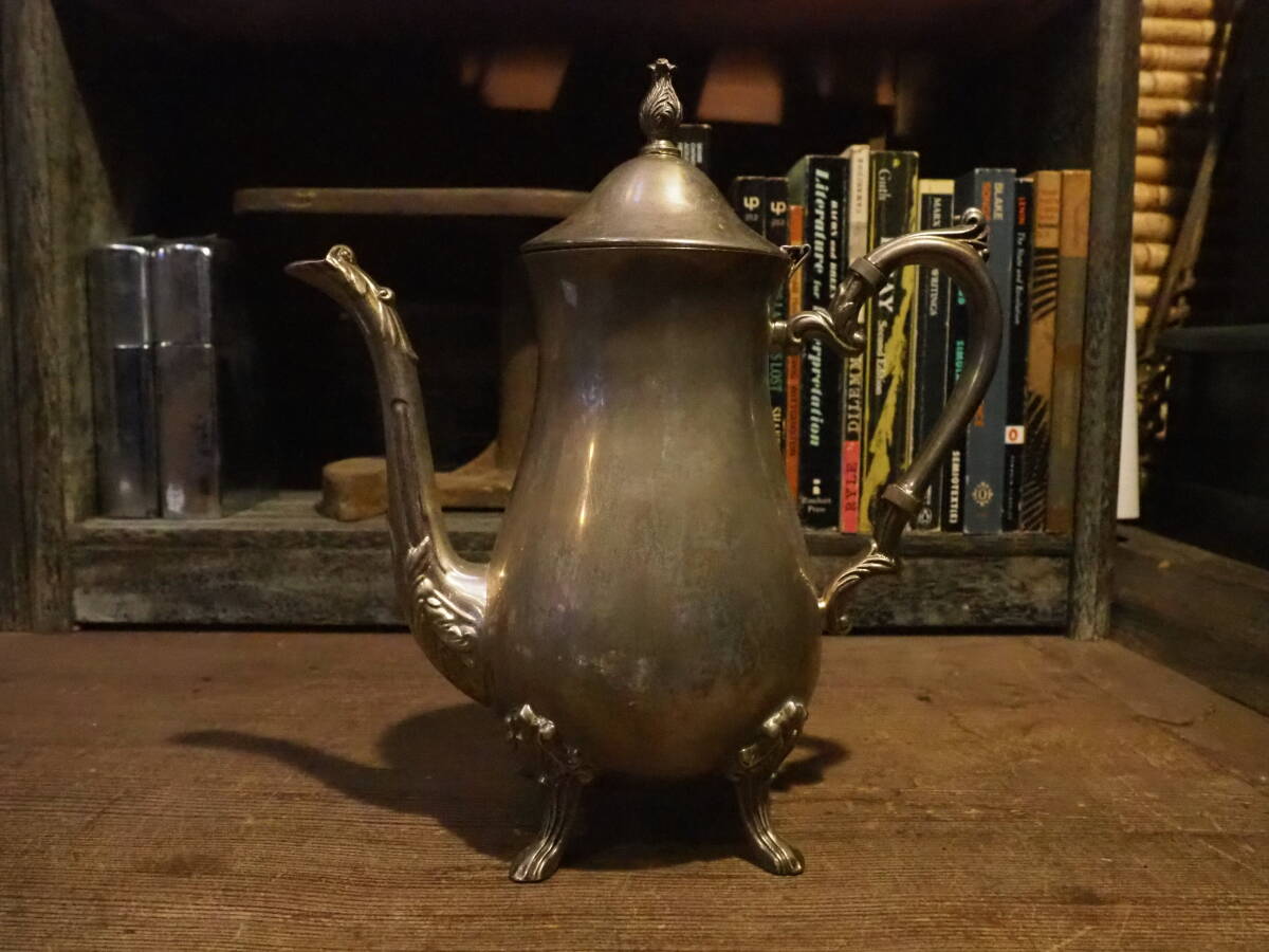 - 【フランス蚤の市英国アンティークティーポット】猫脚シルバープレート古道具インテリアケトル骨董やかんミル薪ストーブカフェバーコーヒー