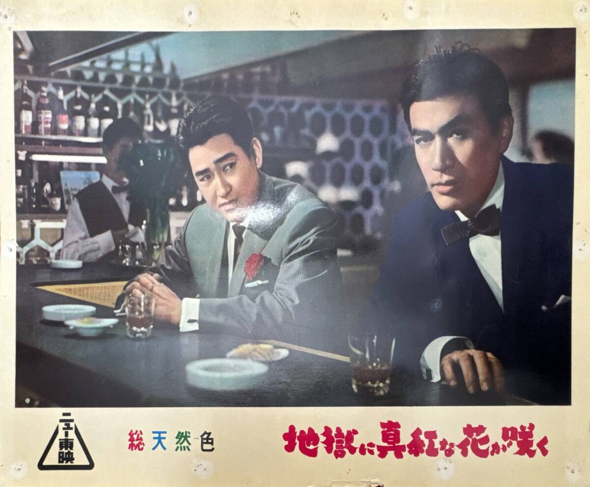 - ly02823『地獄に真紅な花が咲く』ロビーカード 佐伯清 川内康範 鶴田浩二 佐久間良子 ペギー葉山 伊藤雄之助 渥美清