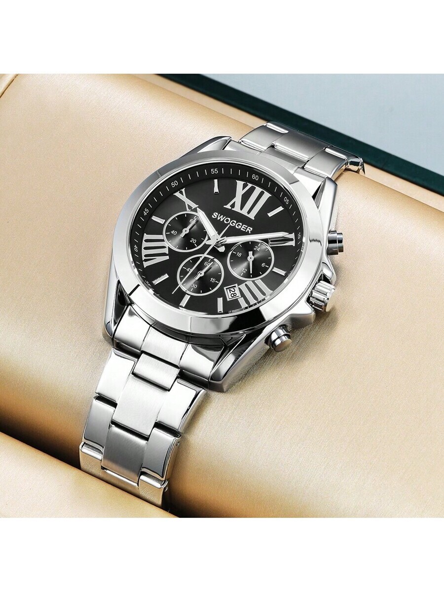 - 腕時計 メンズ クォーツ 1個 メンズ ステンレススチール ローマ数字 防水 ルミナス クォーツ 腕時計 -6012