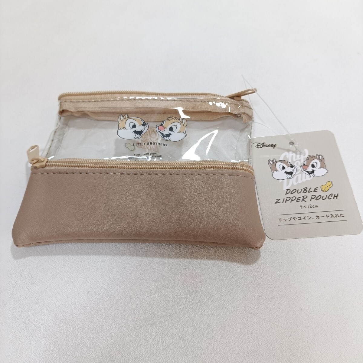 - チップ&デール ダブルジッパーポーチ 12cm×9cm 未使用品 [ディズニー リップケース ポーチ ミニ チップとデール グッズ]