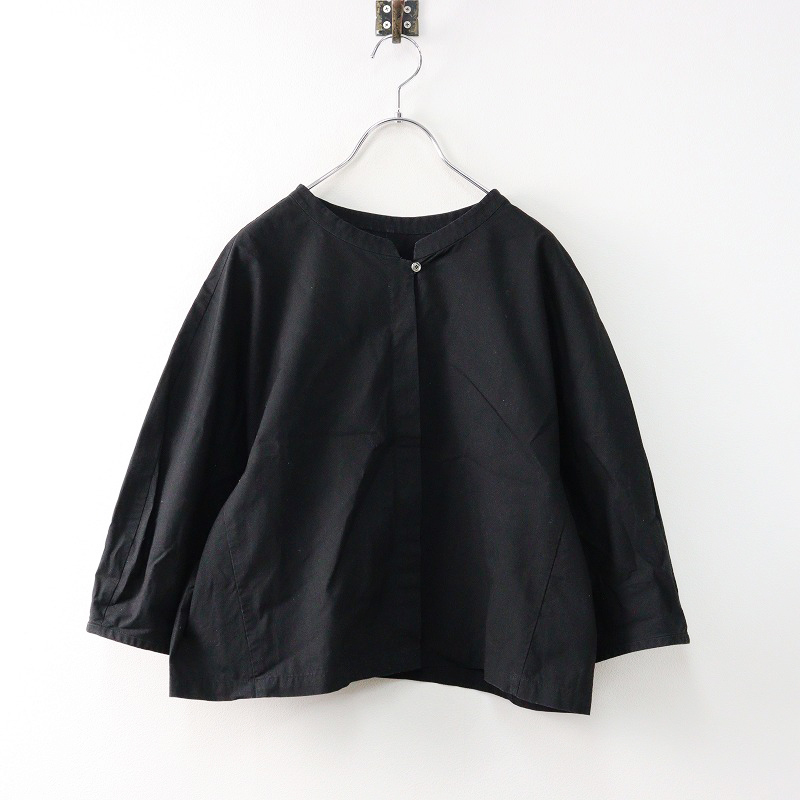 > リゼッタ Lisette コットン スタンドカラー クロップド シャツ ブラウス 38/ブラック トップス 羽織り バンドカラー【2400014189834】