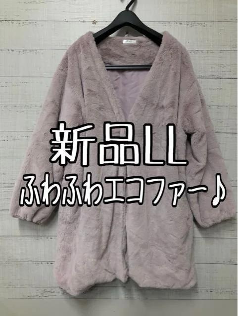 - 新品☆LL♪グレーピンク系♪ラビットのようなエコファーノーカラーコート☆e717