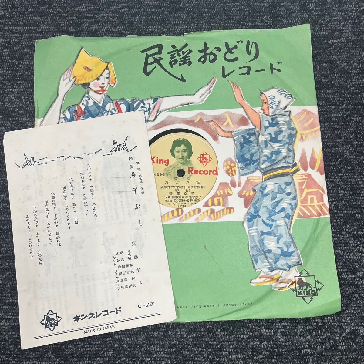- SP盤 レコード 民謡 / 秀子ぶし - おこさ節 / 斎藤京子 / 歌詞カード付き C-1296 KW156