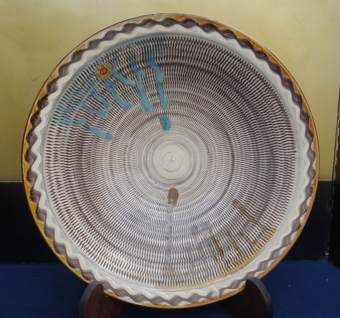 - 46センチ 国指定・重要無形文化財技法 筑前(福岡県)小鹿(おんた)焼 飛び鉋技法 大皿 美品です。B