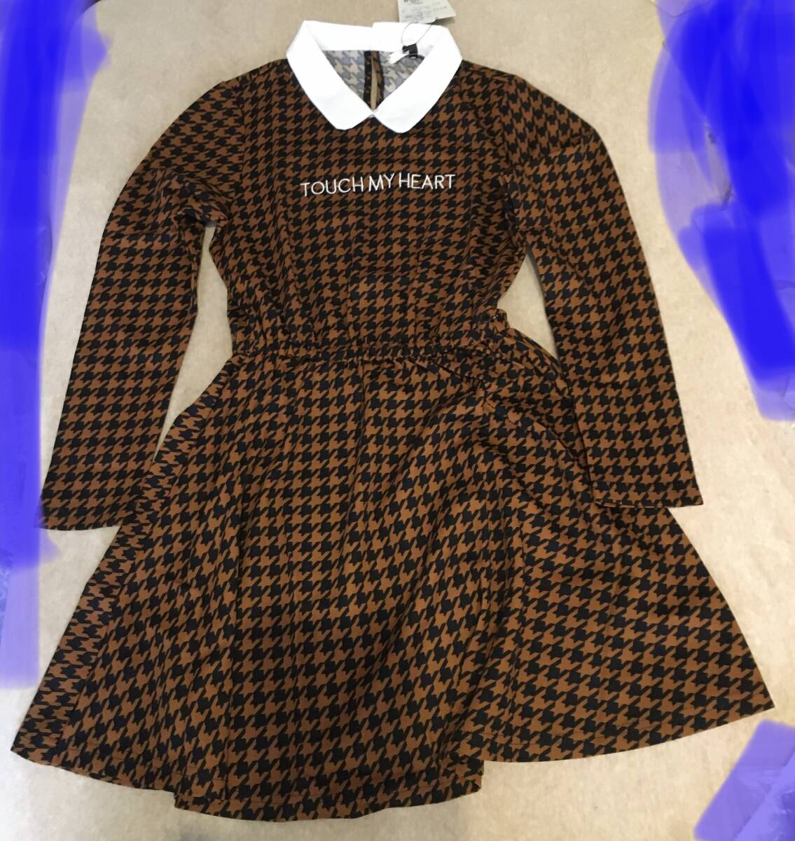> ラスト 新品 PINK-latte フクレジャカードワンピース キャメル(241) XS(150cm)