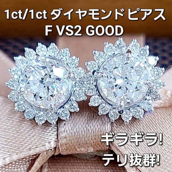 - 【製造大卸☆最安値】ギラギラ!テリテリ 存在感抜群!2ct ダイヤモンド F VS GOOD 18金 K18 WG ホワイトゴールド ピアス 【鑑定書付】
