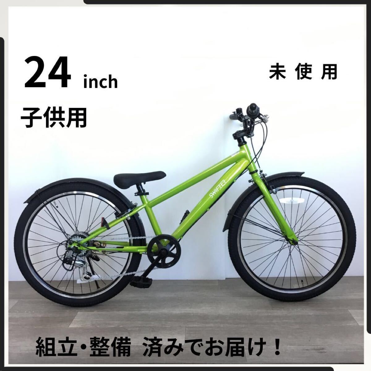 > 24インチ 6段ギア 子供用 自転車 (2461) ライム グリーン A24AEX0882 未使用品 ●