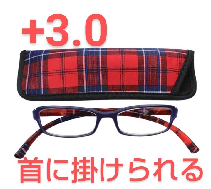 - +3.00新品/首に掛けられる/シニアグラス/ネックリーダーズ/マットチェック