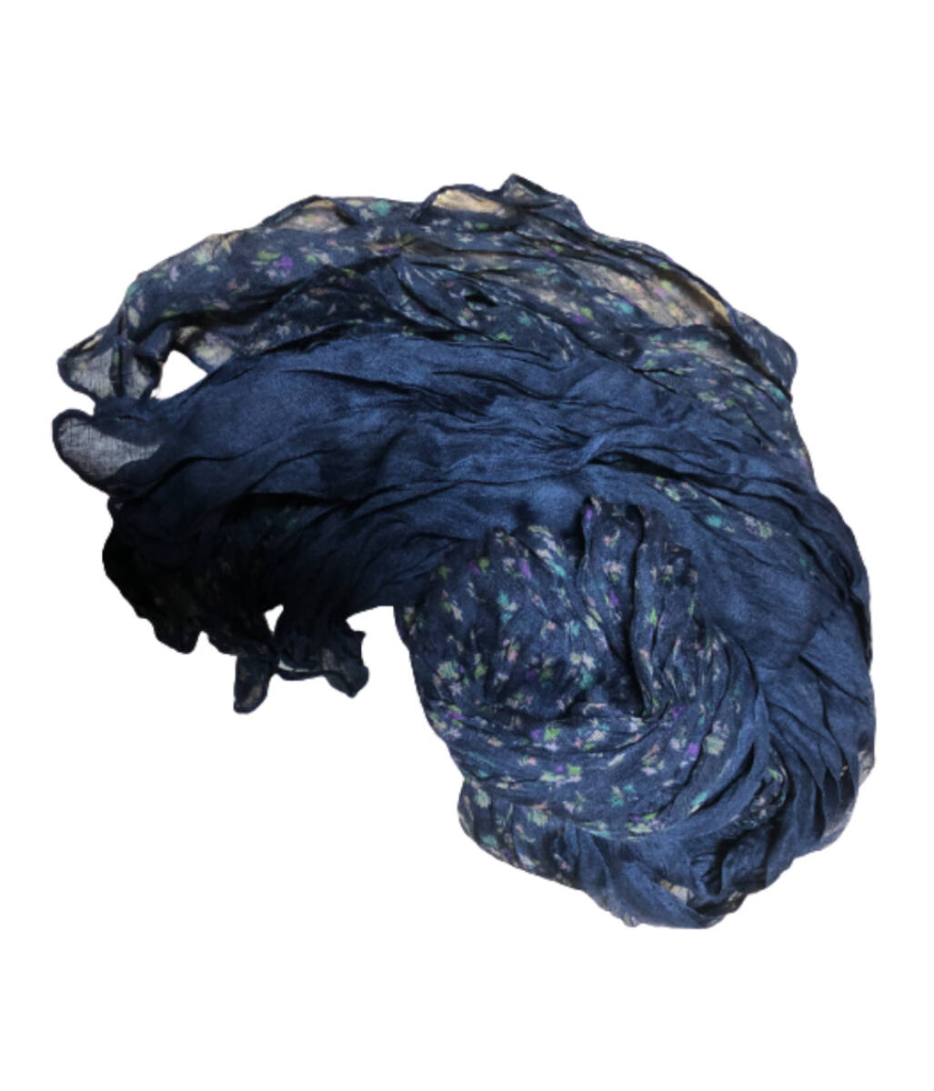 - 新品●送料無料【ネイビー】 大判 ナチュラル コットンスカーフ ショール 広げると大きくなる まとめると小さく 皺加工 プリーツ