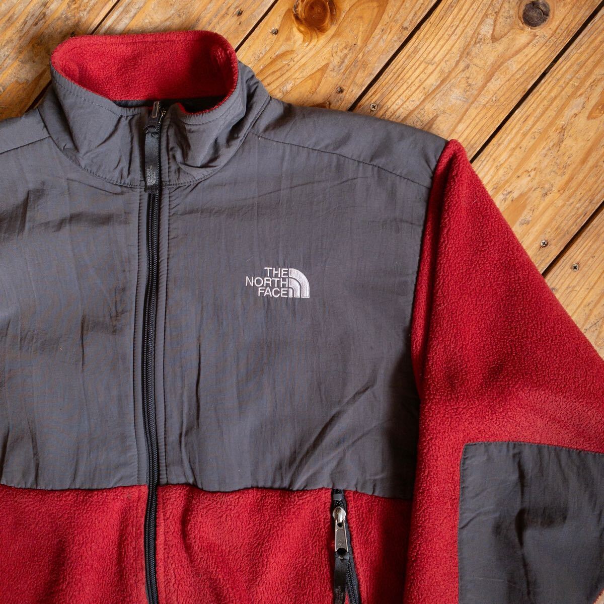 - USA古着 THE NORTH FACE ノースフェイス デナリジャケット ボーイズ Lサイズ レッド 赤 灰色 グレー フルジップ アウトドア J3811