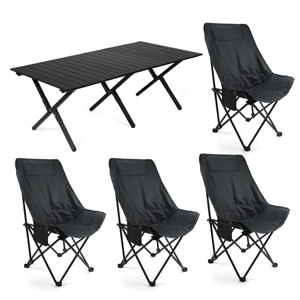 - 折りたたみテーブル&チェアセット 1テーブル4チェア 軽量コンパクト 簡単組立 収納バッグ付 (テーブル:120x60x45cm / チェア:55x90cm)黒