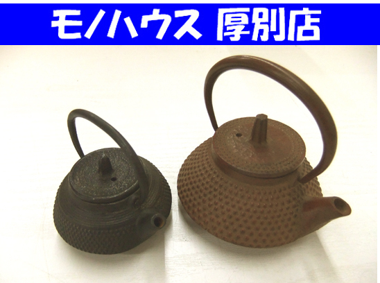 ミニ鉄瓶2個セット ミニチュア 茶色系 直径 約8.5cm 黒系 直径 約6.3cm 中古 札幌市厚別区 厚別店