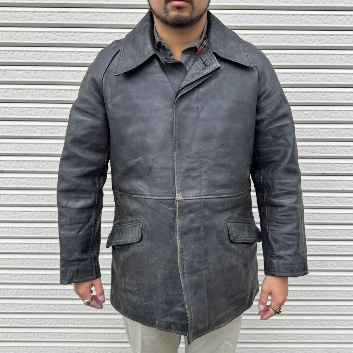 > 60s フランス製 ファイヤーマン レザー ジャケット コート フレンチ カーコート フランス軍 ラムスキン 羊革 70s ヴィンテージ GVF L