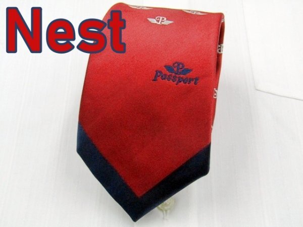 - 【パスポートコントロール】 NA 931 ネスト Nest ネクタイ 赤系 ドット ワンポイント ブランドロゴ ジャガード