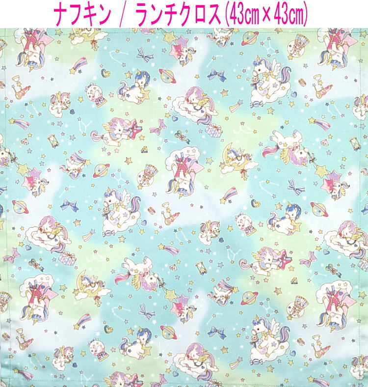 > ナフキン・ランチクロス(43cm×43cm)正方形【星空ユニコーン柄 グリーン】ランチマット ランチョンマット 日本製 ペガサス ゆめかわ 星座