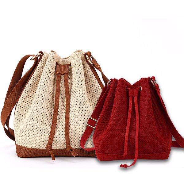 - 巾着バッグ 巾着 レディース ショルダーバッグ かわいい 小さめ ニットバッグ ロールバッグ ニットバッグ レディース 洗える 軽量 3色