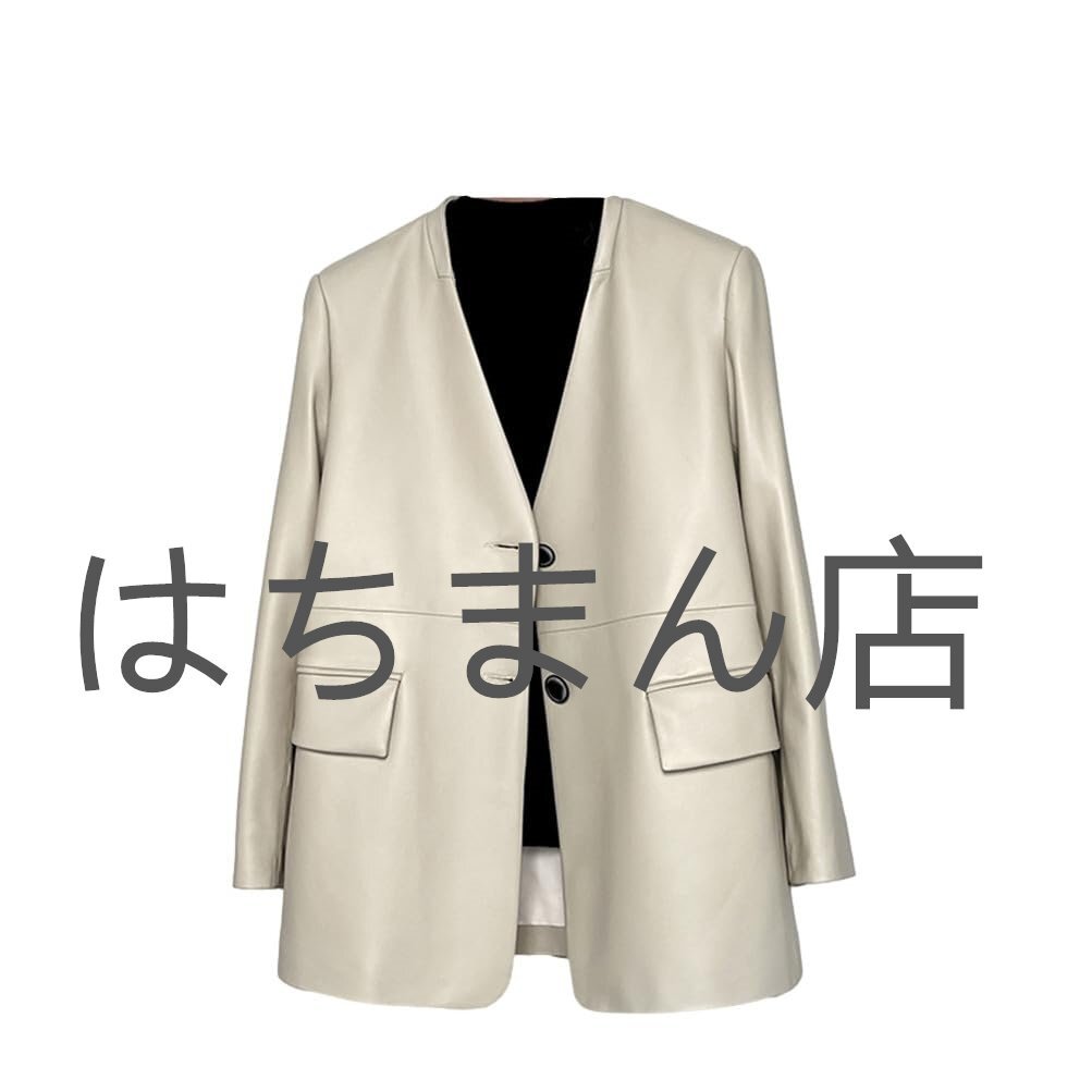 - テーラードジャケット レディース ラムレザー 本革 リアルレザー 羊革 革ジャン レザージャケット アウター ト エレガント クリーム M-3XL
