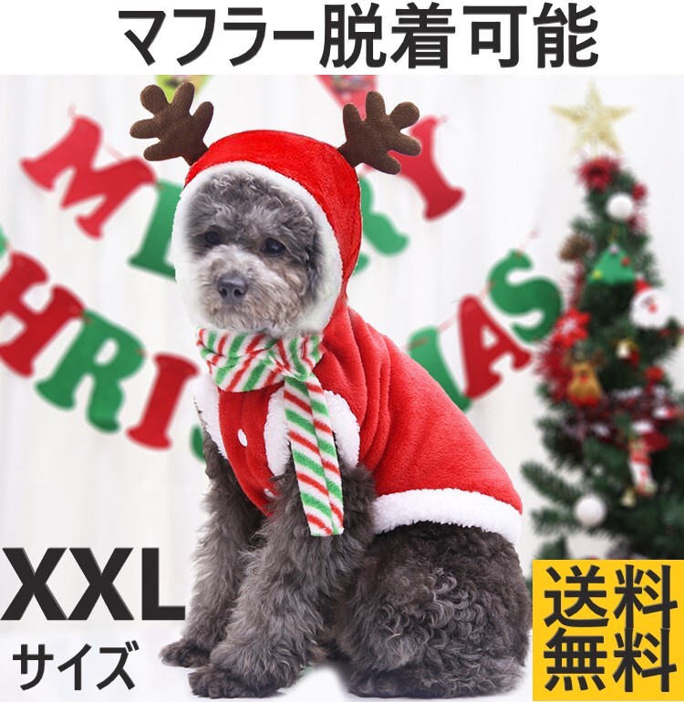 - XXLサイズ クリスマス 犬服 ドッグウエア コスプレ トナカイ サンタクロース パーカー マフラー付 防寒 温かい フワフワ生地 Xmas ペット服