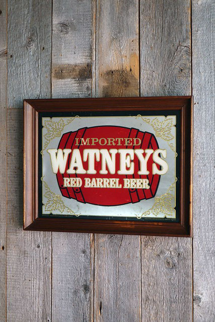 > ビンテージWATNEYSREDBARRELBEERパブミラー [gop-346]検アメリカ/USA/インテリアコレクション鏡壁掛け/1980年代頃BAR店舗ディスプレイ什器